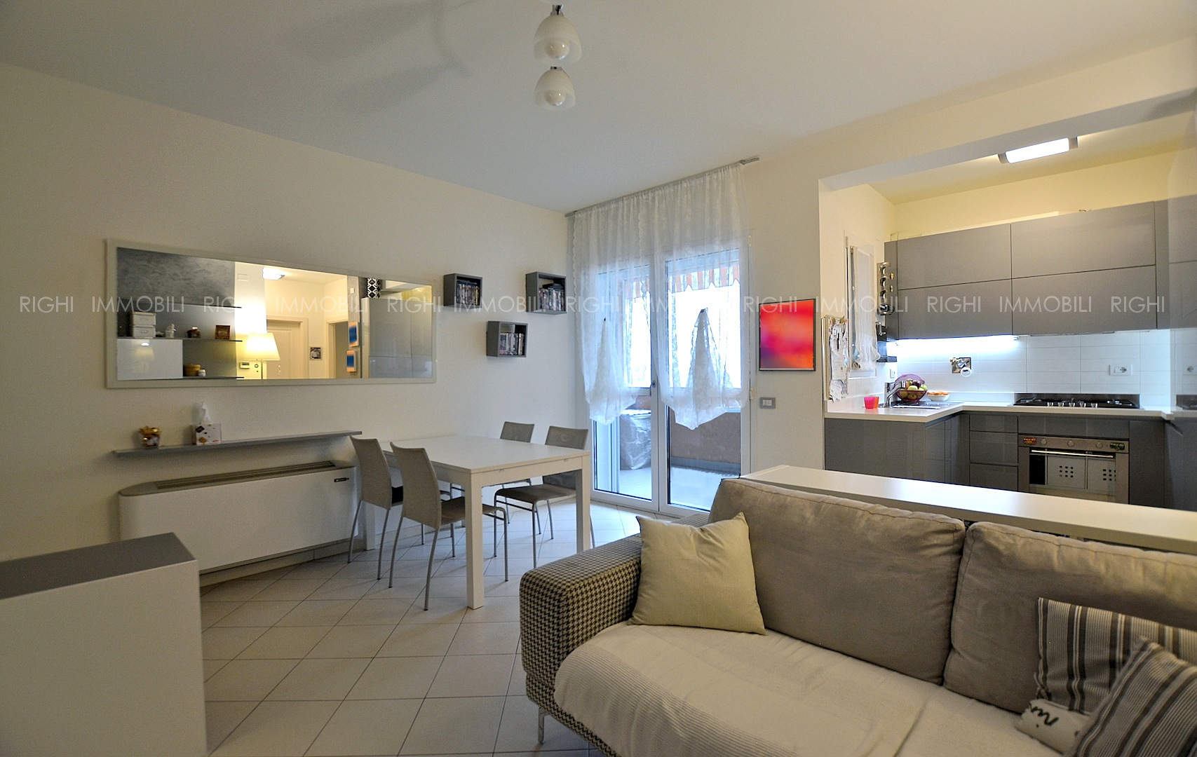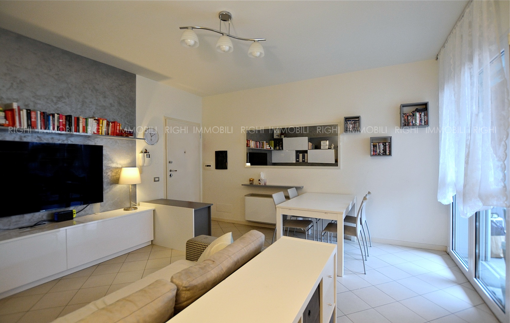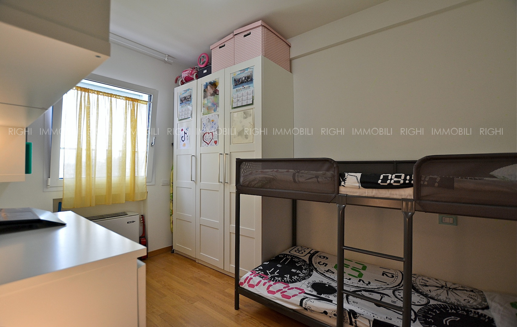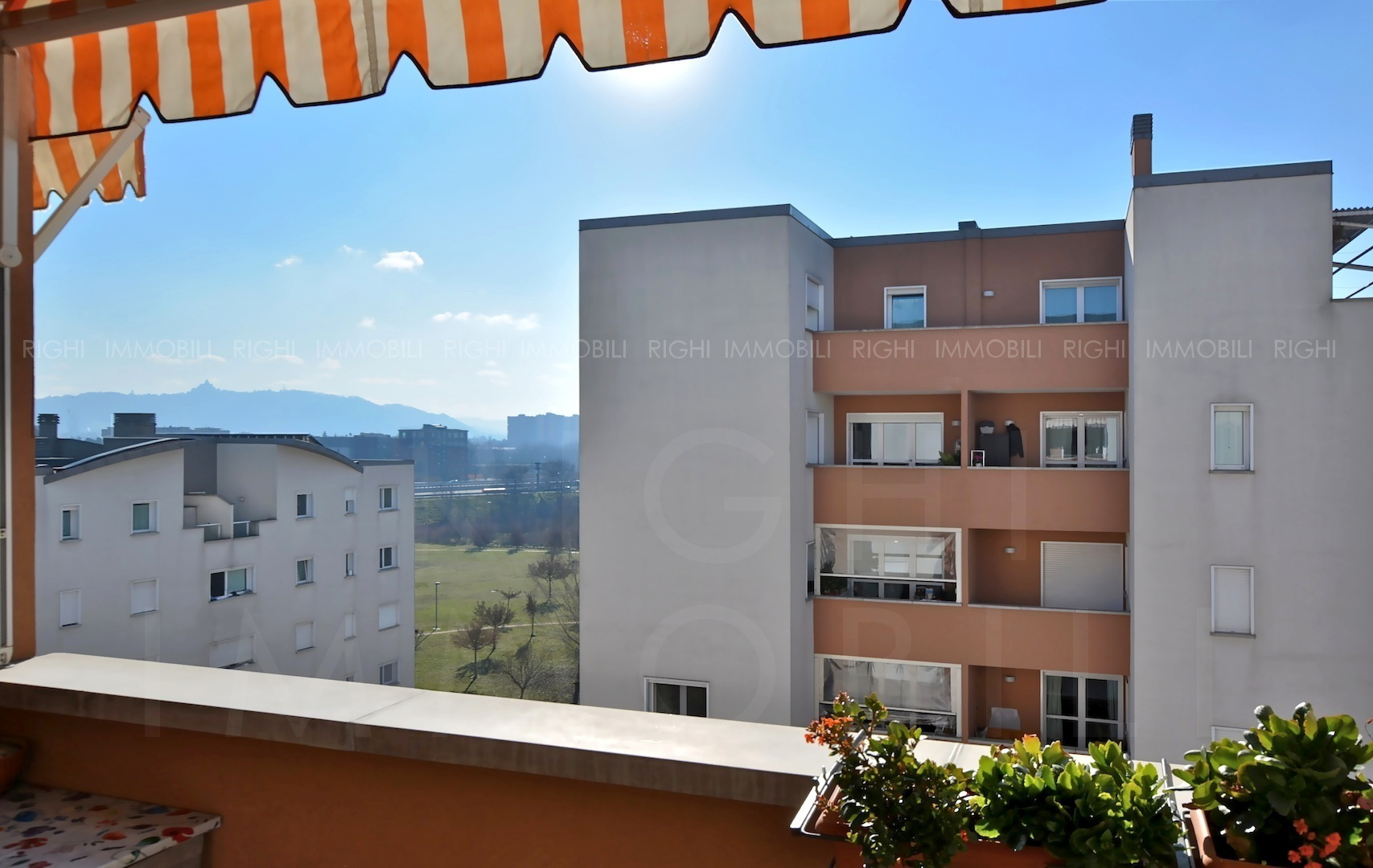 In contesto residenziale di recente realizzazione con ampi spazi verdi e disponibilità di posti auto, al piano alto di signorile stabile con ascensore e privo di barriere architettoniche, silenzioso e panoramico appartamento ottimamente tenuto. L’unità immobiliare si compone di soggiorno, cucina, disimpegno, camera matrimoniale con bagno, camera singola, bagno, loggia abitabile. Cantina ciclabile. Riscaldamento e raffrescamento a pompa di calore con contacalorie. CL. A3 – EP. 36,42 € 250.000