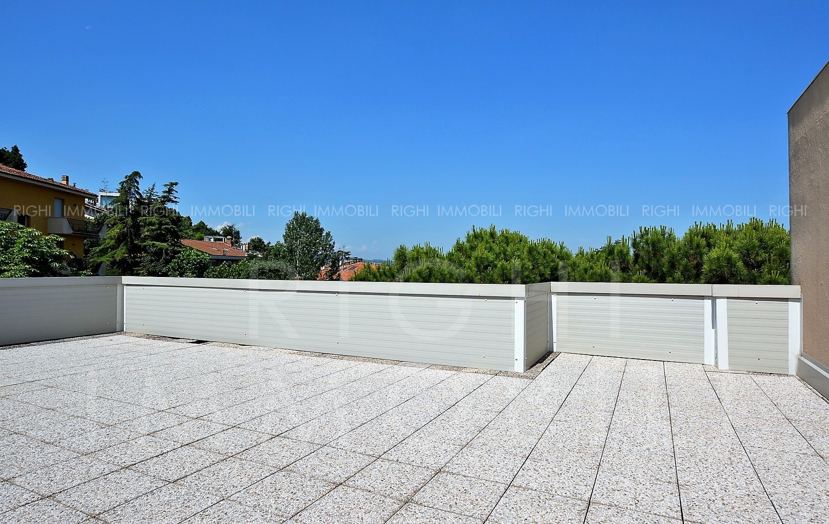 All’ultimo piano di pregevole stabile con ascensore, in posizione interna e tranquilla, immerso in un curatissimo giardino condominiale, luminoso attico, unico al piano, con ampia terrazza abitabile ed affacci sul verde: ingresso arredabile, salone con camino, cucina abitabile, 3 camere matrimoniali (volendo 4° camera), 3 bagni, lavanderia/stireria, vani ripostiglio, balconi. Contacalorie, aria condizionata. Spaziosa cantina ciclabile, posti auto e moto condominiali. Disponibilità di uno o due garage all’interno dello stabile. CL. G-EP 321,61. € 750.000
