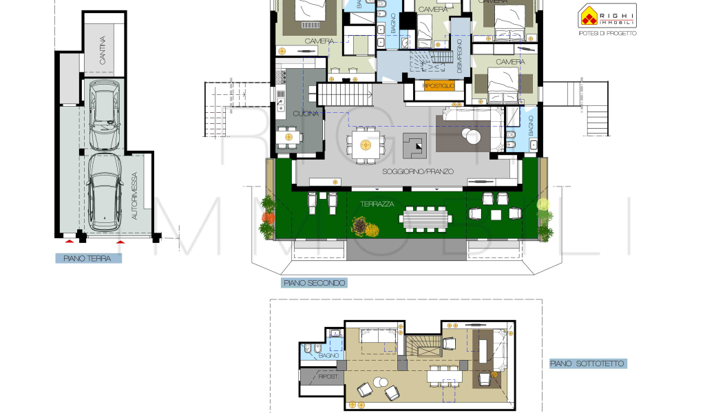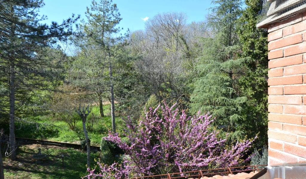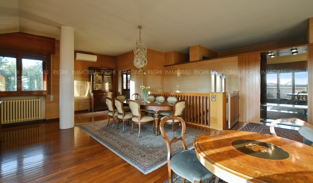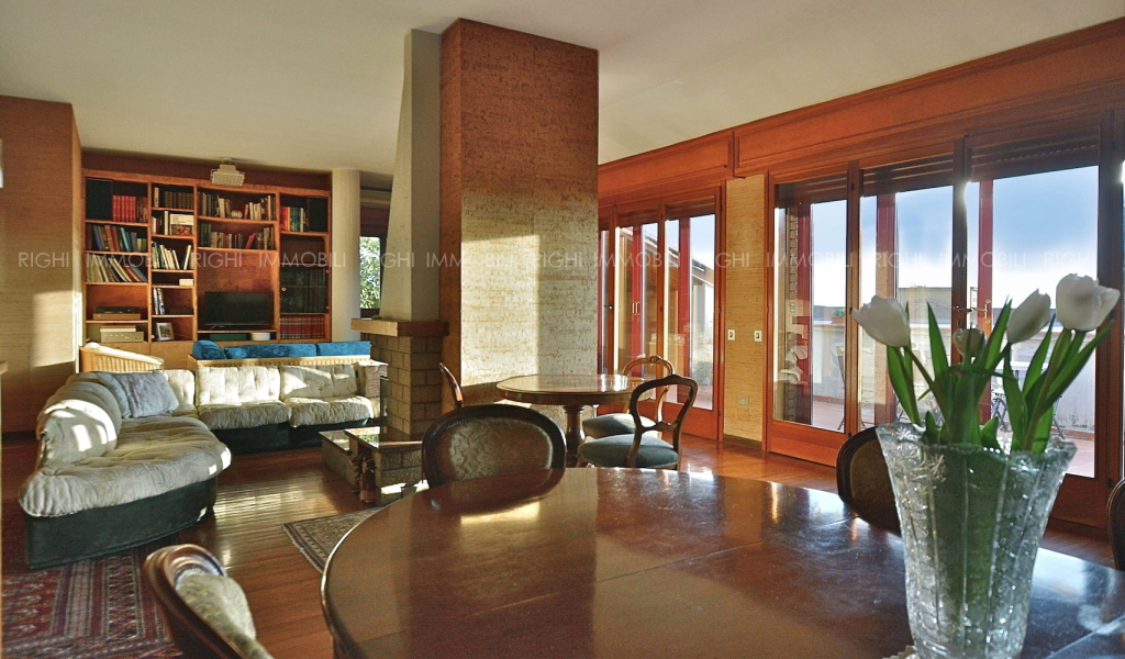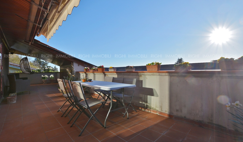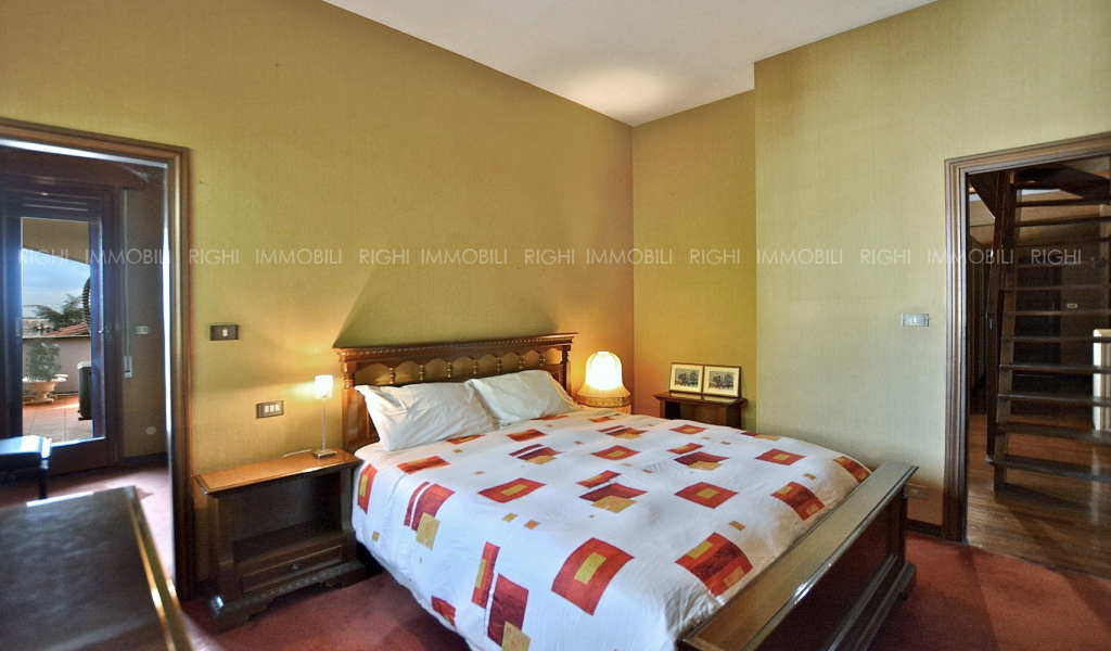 All’ultimo piano di signorile villa trifamiliare pietravista, sita in tranquilla posizione pedecollinare ma a poca distanza dai servizi di Via Toscana, elegante appartamento con terrazza abitabile, affacci panoramici ed immerso nel verde. L’unità immobiliare, con accesso indipendente ed esposta su quattro lati, si sviluppa sull’intero secondo piano con prestigioso salone doppio con camino centrale ed accesso alla terrazza, cucina abitabile, disimpegno arredabile, tre camere di cui una con cabina armadio, due bagni, lavanderia. Internamente collegata con l’appartamento, spaziosa mansarda con bagno e ripostiglio illuminata da ampi velux. Riscaldamento autonomo. Aria condizionata nel salone. Completano la proprietà garage doppio, ampia cantina ciclabile e ripostiglio. L’immobile, da rivedere internamente, consente una ottimale fruizione e personalizzazione degli spazi. E’ possibile realizzare una quarta camera ed un quarto bagno ed usufruire della predisposizione esistente per un secondo accesso. CL. F – EP. 254,51 kwh/mq/anno. € 850.000