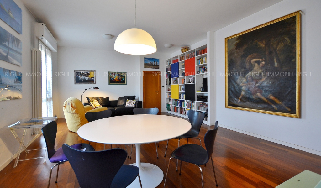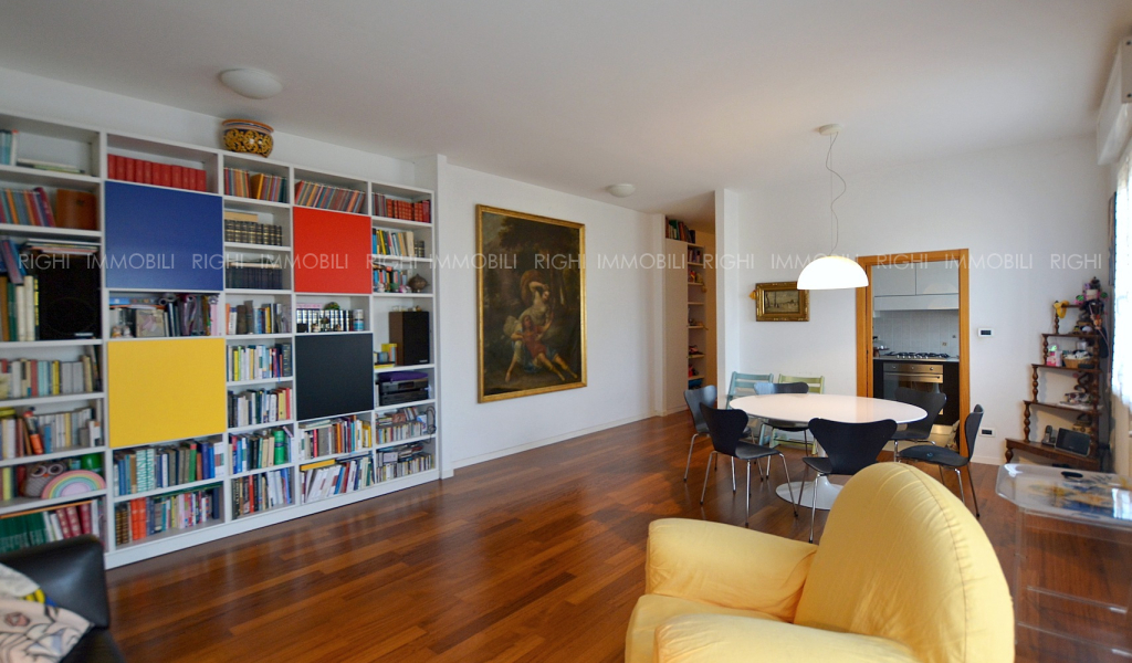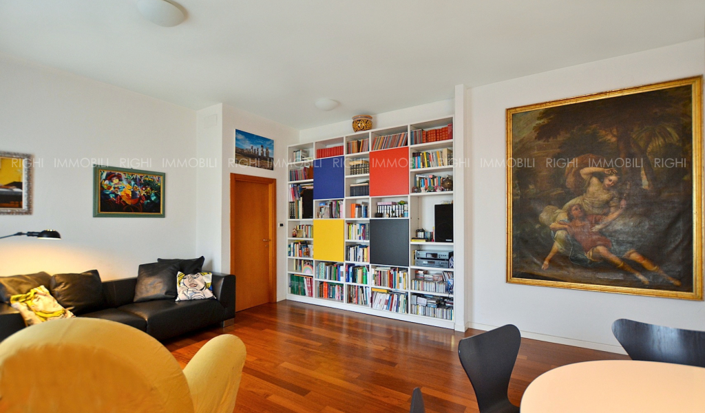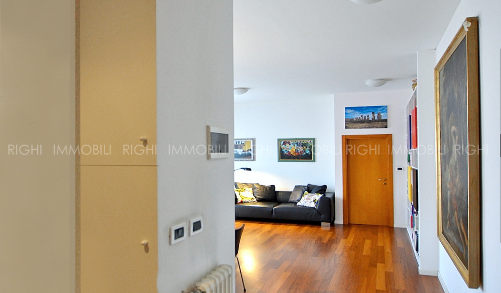 All’ultimo piano di signorile stabile con ascensore, luminoso e silenzioso appartamento in ottimo stato e con finiture di buon livello. L’unità immobiliare si apre su ingresso arredabile che introduce all’ampio soggiorno con cucina separata e balcone. La zona notte presenta un disimpegno, 2 camere matrimoniali ed un bagno (possibile secondo bagno). Impianti certificati. Riscaldamento centralizzato con conta calorie. Caldaietta autonoma per produzione di acqua calda. Cantina ciclabile. Corte condominiale con giardinetto, posti auto e area riservata per scooter e biciclette. CL.G – EP 225,73 kwh/mq/anno. L’immobile è corredato di Relazione Tecnica (RTI) di conformità urbanistica e catastale. € 360.000 Autorimessa al piano terra € 25.000